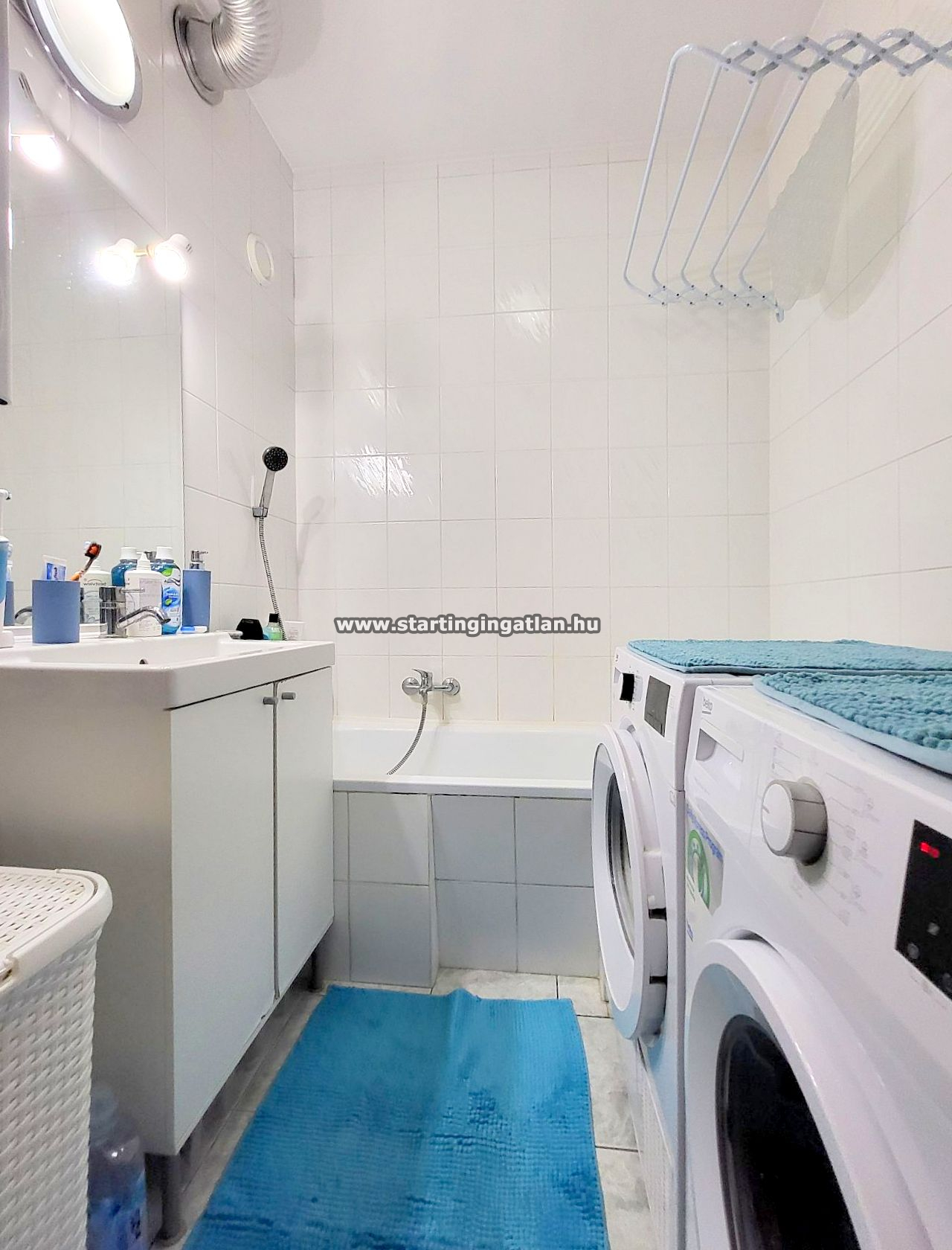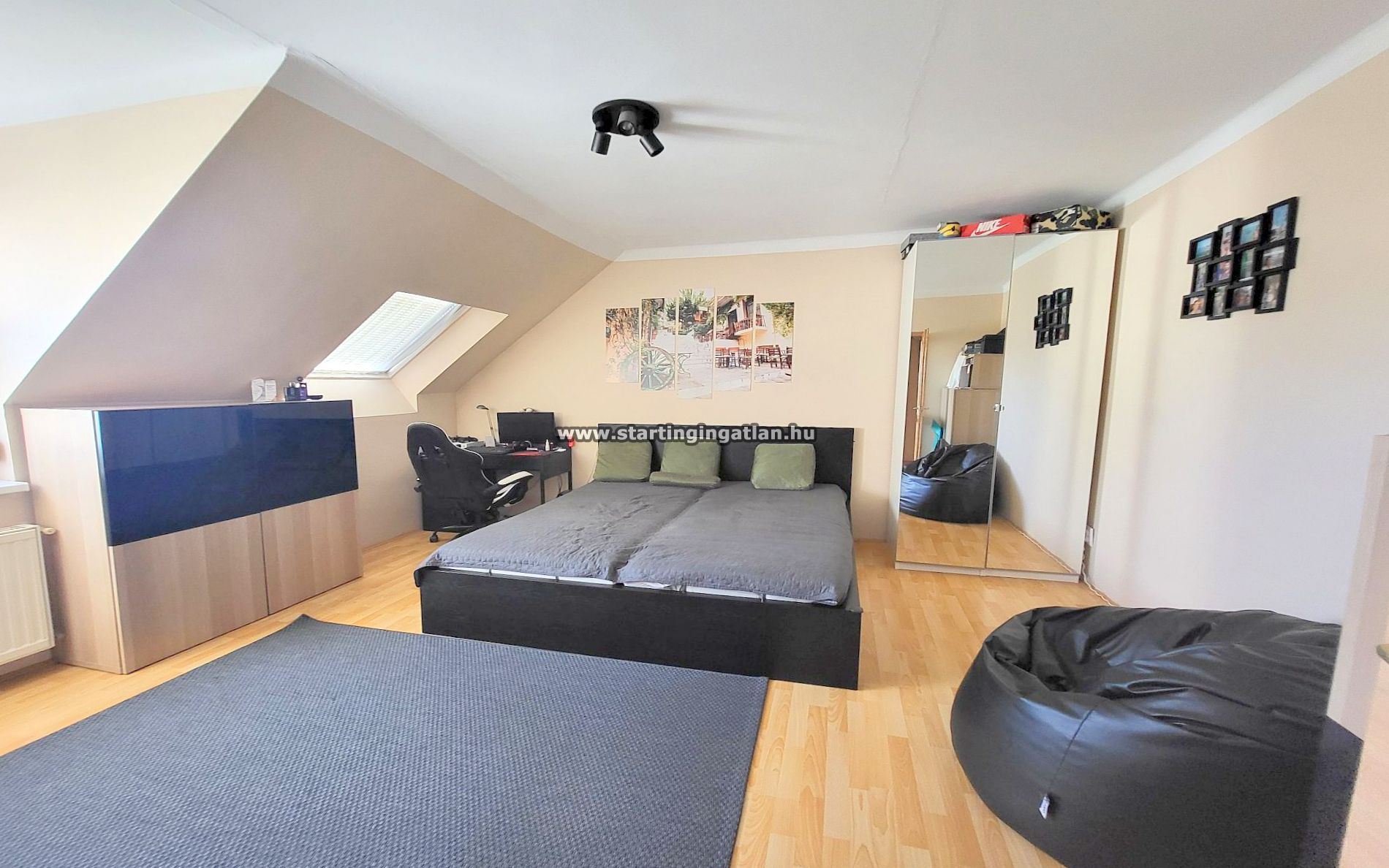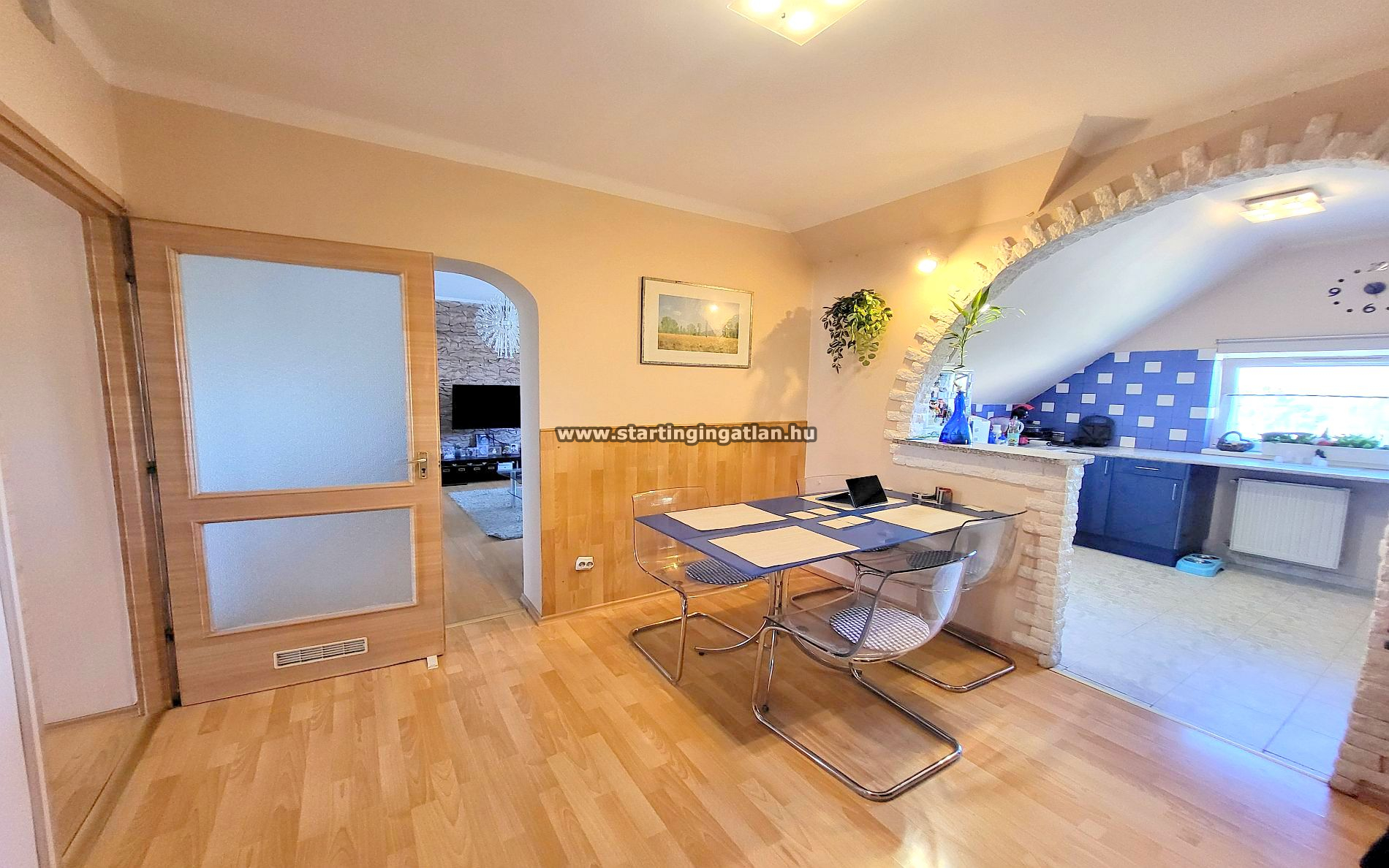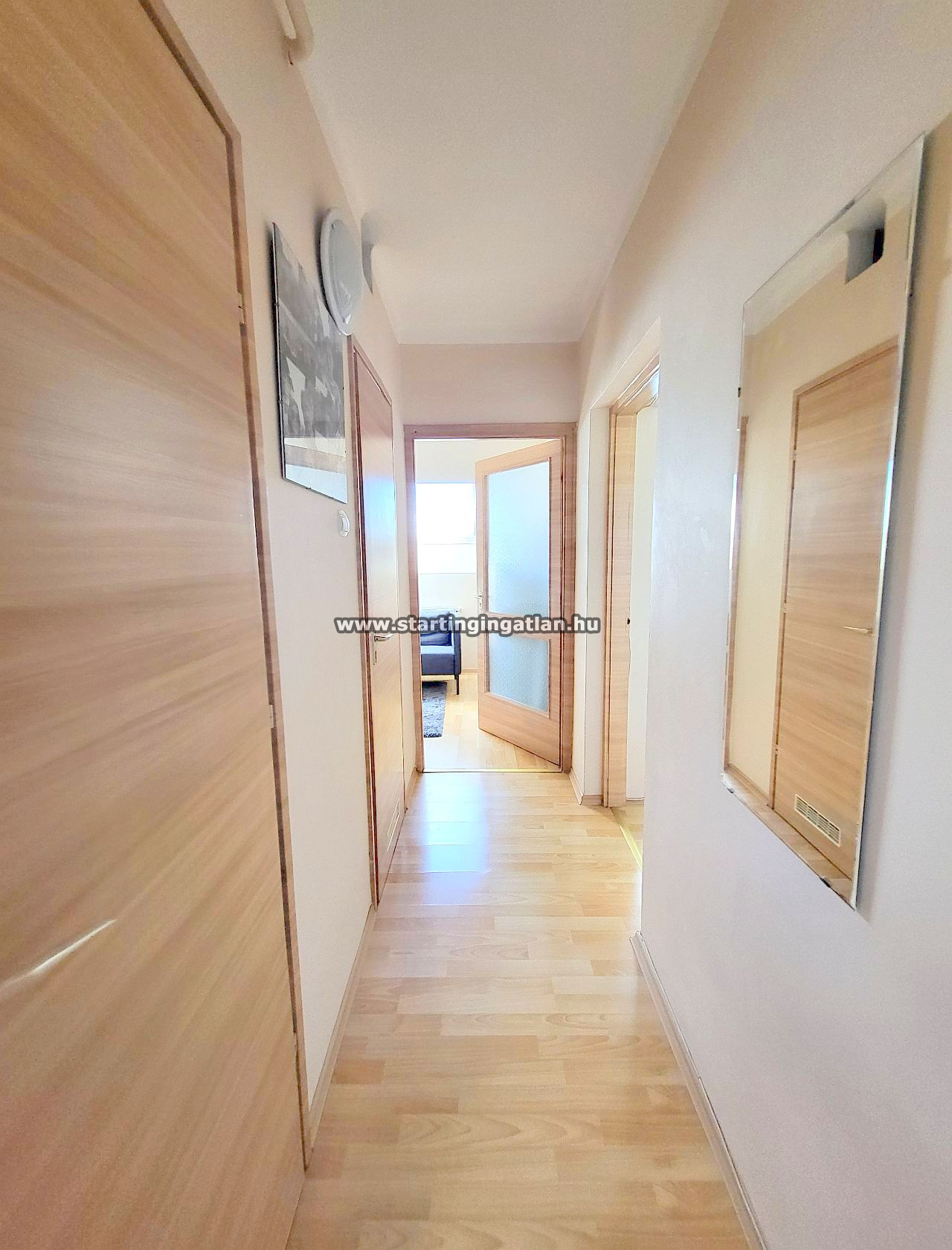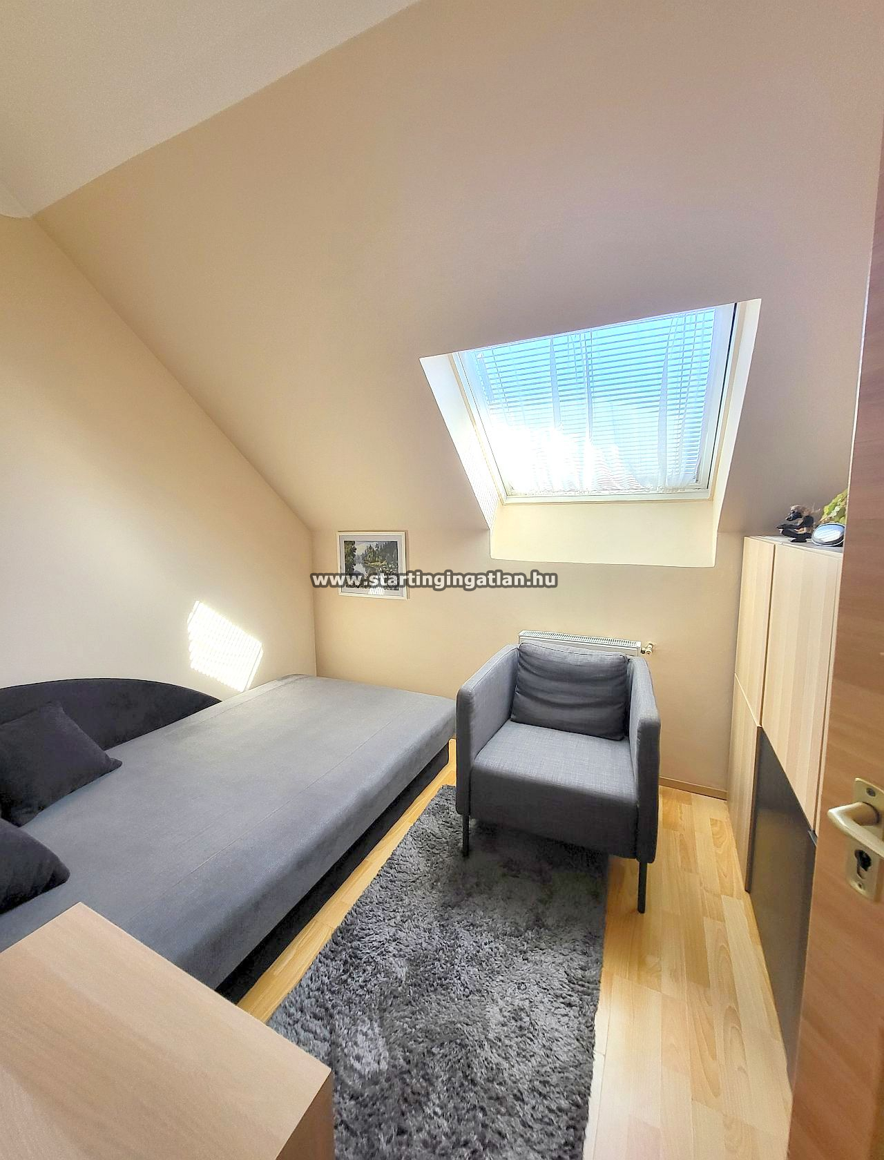 Budapest XVI. kerületének egyik legkedveltebb, csendes utcájában, a Gesztenye utcában kínálunk megvételre egy 1997-ben épült, két szintes ház második emeletén található, részben tetőtéri, 67 m²-es, 2+1 szobás, kitűnő állapotú lakást. Ez az otthon igazi ékszerdoboz, ahol minden részlet a kényelmet és a harmóniát szolgálja. Már az első pillanatban érezni lehet a gondosan megőrzött, szeretetteljes hangulatot, amely ideális választás családok vagy fiatal, családot tervező párok számára. A lakás elrendezése rendkívül praktikus: a lépcsőházból belépve egy tágas előszobába érkezünk, amelyből az étkező és a napfényes, ablakos konyha nyílik. A beépített konyhabútor az ingatlan részét képezi, így az új tulajdonosnak ezzel már nem lesz gondja. A három külön nyíló szoba közül a nappali nagy ablakkal világos, otthonos tér, a szülői háló egy normál és egy tetőtéri ablakkal rendelkezik, míg a kisszoba szintén tetőtéri ablakkal kap természetes fényt. A szobákban laminált parketta, a többi helyiségben járólap található. A nyílászárók egy része műanyagra lett cserélve, a többi kiváló állapotú, ezért megőrizték eredeti formájában. A fürdőszoba kádas, és külön helyiségben található a mellékhelyiség, ami a mindennapokat még kényelmesebbé teszi. A fűtésről cirkó kazán gondoskodik, a közös költség mindössze 14.800 Ft, minden más fogyasztás alapján fizetendő. A nyári melegben Gree klíma biztosítja a kellemes hőmérsékletet.